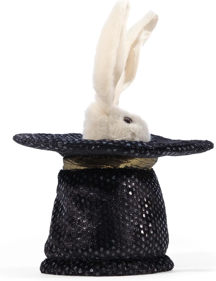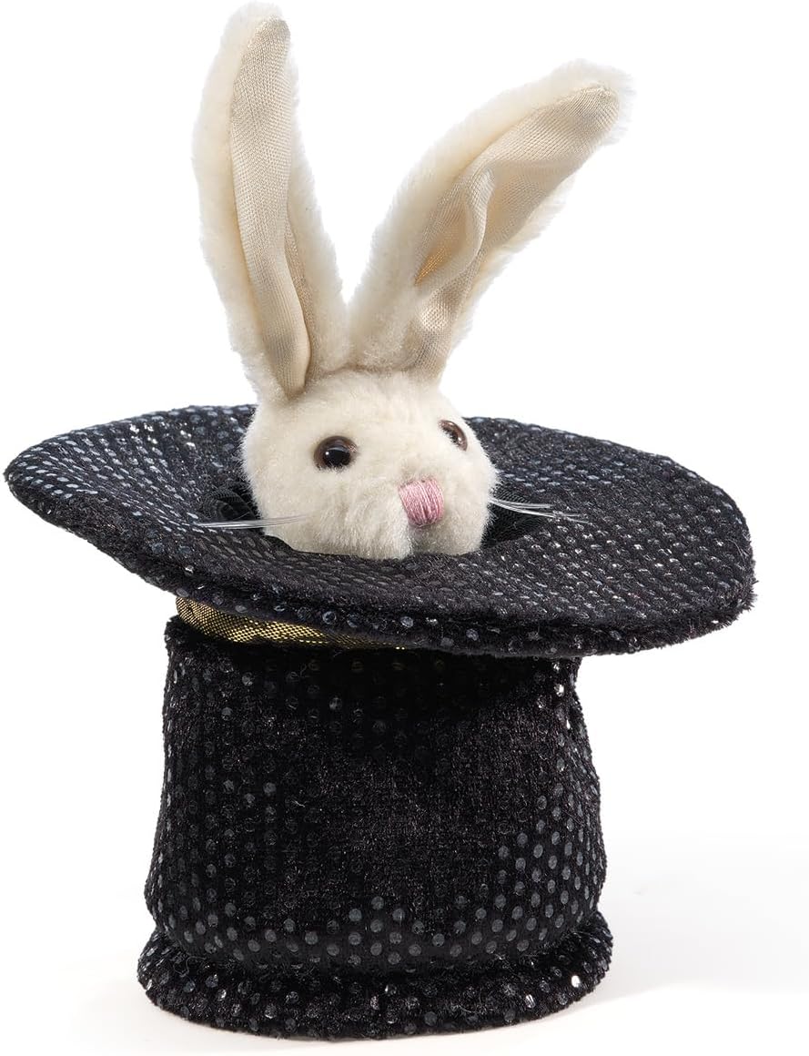 A big surprise in a small package, the Mini Magic Hat finger puppet is a playful charmer. In this sparkling black magician’s hat pops out a soft velour white rabbit to enchant and delight for anytime fun. This puppet measures 4 x 4 x 5 inches (LxWxH).
