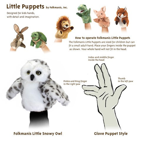The Folkmanis® Little Snowy Owl is ideal for small hands. Kids can flap the wings to give flight to their imaginations.