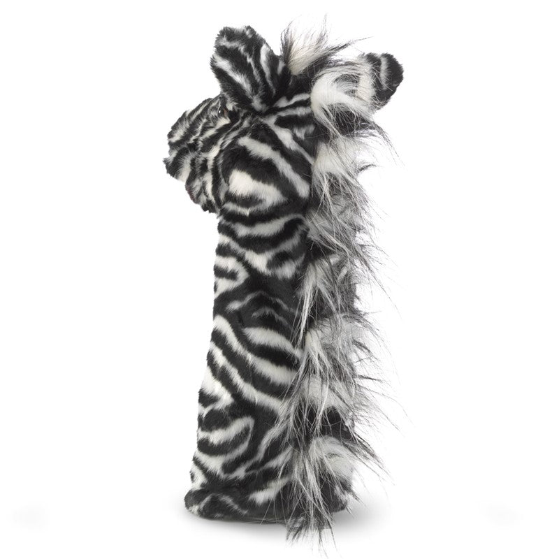 The Zebra Stage Puppet features an easily animated mouth and lots of expression! Design details include a leatherette nose, soft vintage-look plush with beautiful striping and a distinctive black and white mane.