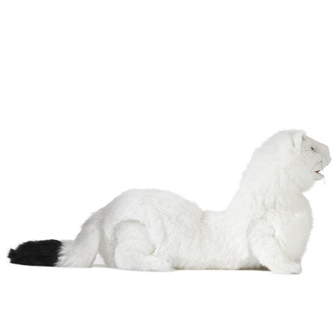 White like winter snow with a black tipped tail, the Folkmanis Ermine is an extraordinary and endearing weasel-like animal. This curious creature, also known as a stoat, has a long slinky body, deep coal eyes, movable mouth and a rear pocket for full body movement.