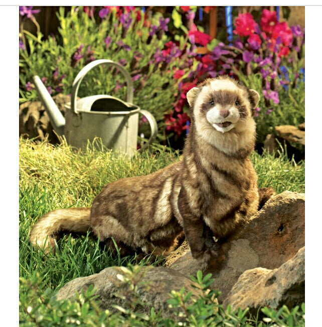 Ferret fans will love this beautiful slinky and butter-soft FERRET puppet! Slip your hand through the opening in his chest to work his mouth and let him weasel a smile out of you. Additional rear pocket for extra wriggling!