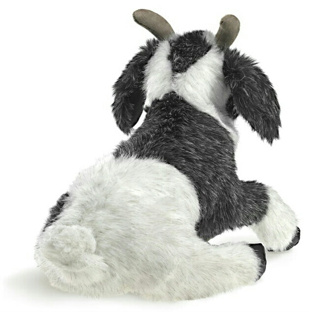 A perennial petting zoo and farm favorite, the good-natured goat is charming and sweet. Folkmanis' 19-inch, salt-and-pepper rendition has a sweet face; floppy ears; and soft, safe, molded horns. Weighted, vinyl hooves make playtime jumping and climbing - some of a goat's favorite activities - realistic and fun.